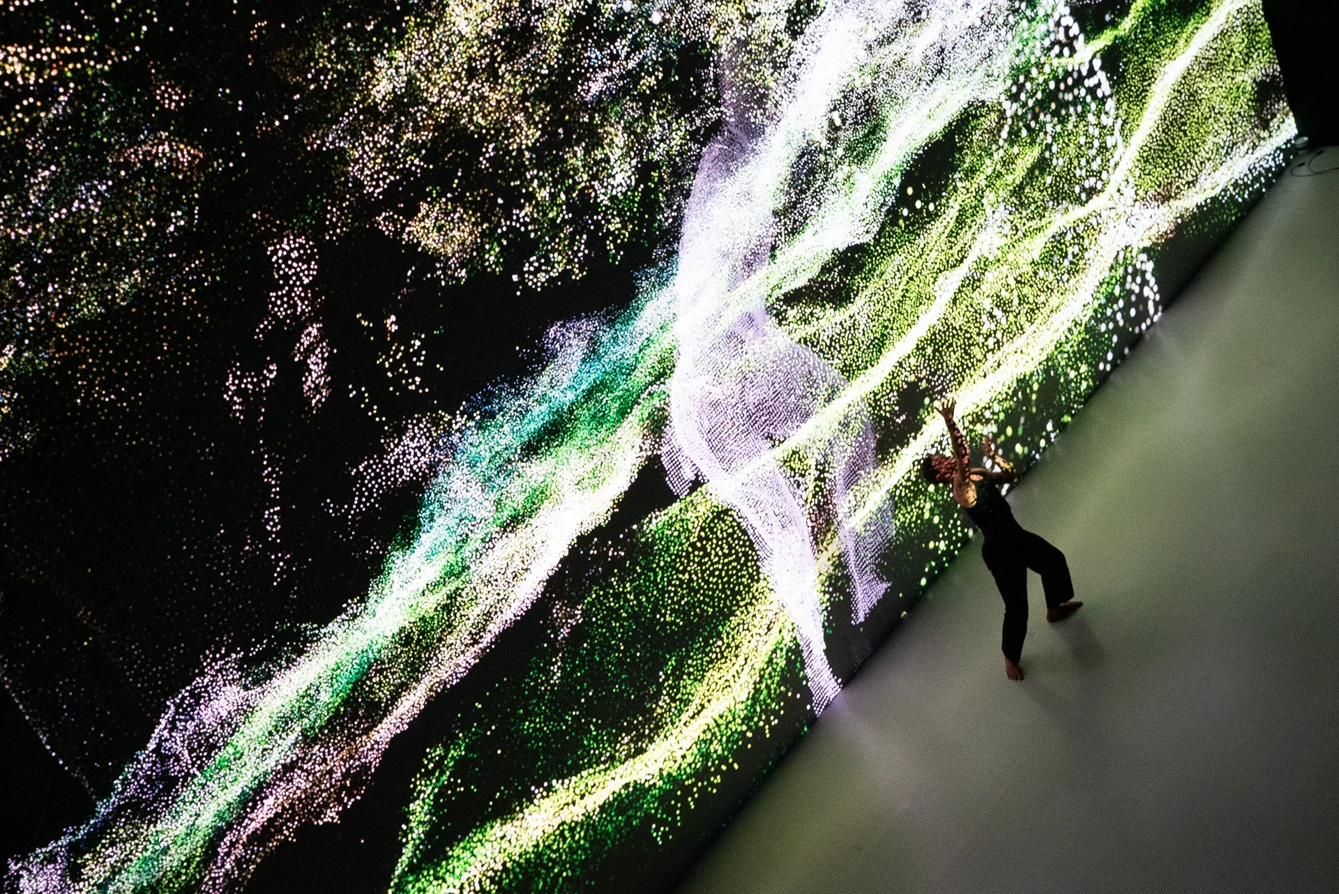 Drawing on 3D scans of natural environments from across the globe, the show immerses audiences in a deeply reactive digital landscape. These meticulously designed worlds serve both as environment and metaphor, inviting reflection on the fragile coexistence between human innovation and the natural world. Each gesture triggers cascading visual transformations, blurring the lines between physical and virtual realms, between performer and avatar.