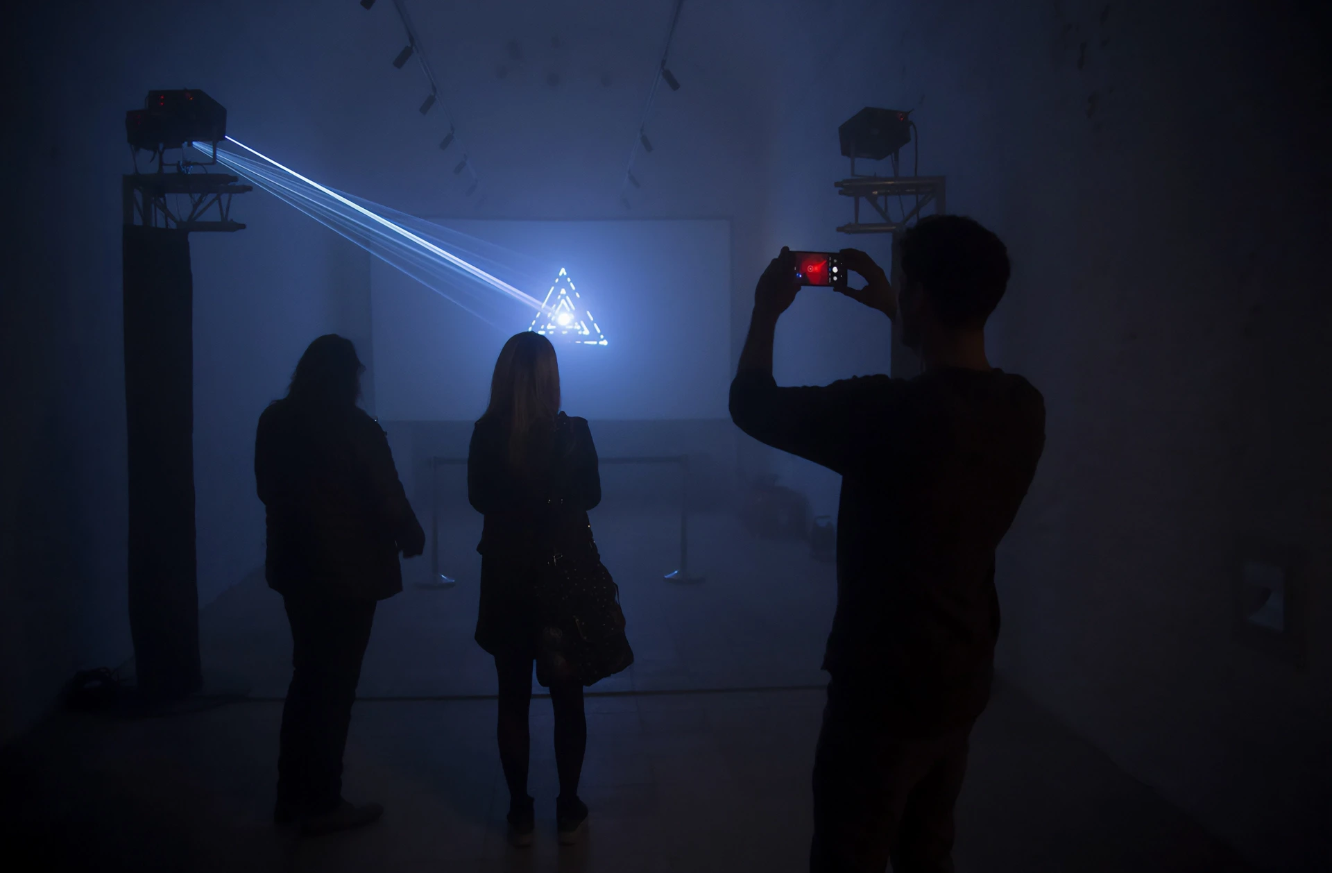 The space is carefully designed to immerse the audience, placing them inside a living, shifting field of light and music. Using laser and generative design, the piece pushes the boundary between art and science turning abstract physics into something you can feel.